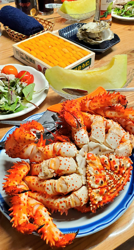 差し入れで頂いた箱ウニ、蟹、牡蠣、秋刀魚のお刺身、秋刀魚の塩焼きなどなど。