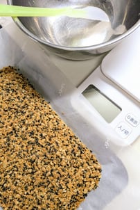 きな粉、胡麻、オートミール、ココナッツオイルを教えてもらった通りに混ぜ混ぜして、冷やし固めたら完成! 滋味深い味わい、レシピを伝授してくださった方に感謝です。